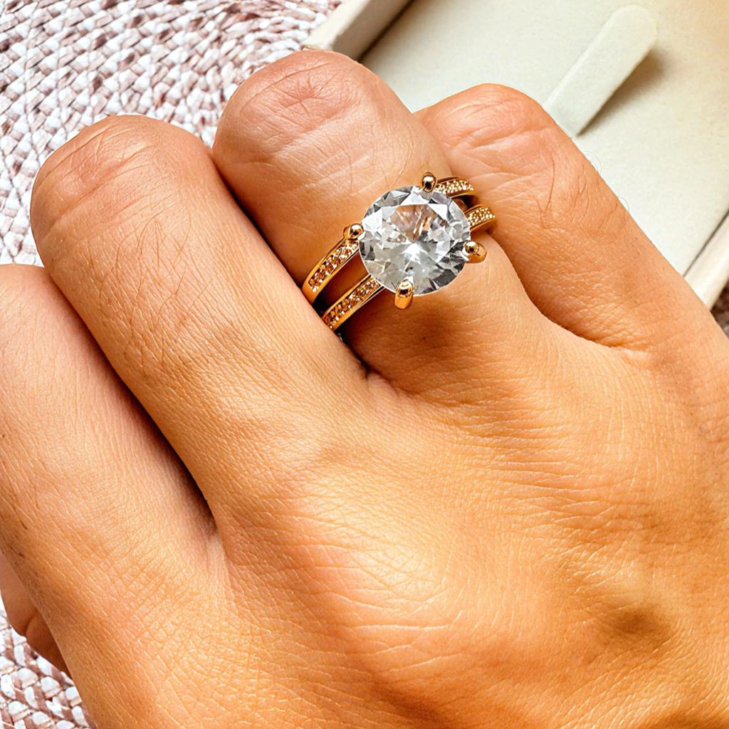Descubra a perfeita harmonia entre elegância e exclusividade com nossa dupla de alianças banhadas em ouro 18k. O design exclusivo Donna B. une o aparador delicado ao solitário, que traz uma pedra de zircônia cristal, garantindo um brilho sofisticado e atemporal.