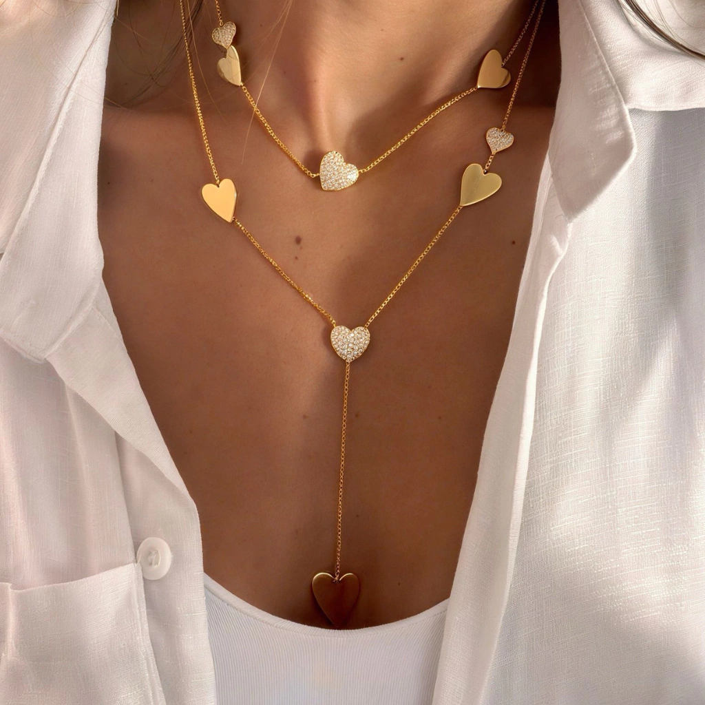 Encante-se com este colar, uma peça delicada e cheia de amor, banhada em ouro 18K para um brilho intenso e duradouro. Seu design exclusivo realça o charme e a elegância, perfeito para complementar qualquer look com sofisticação.